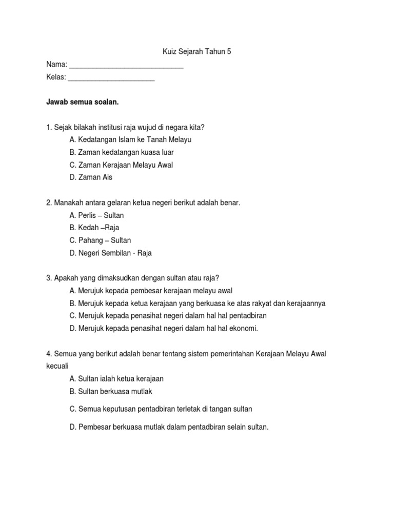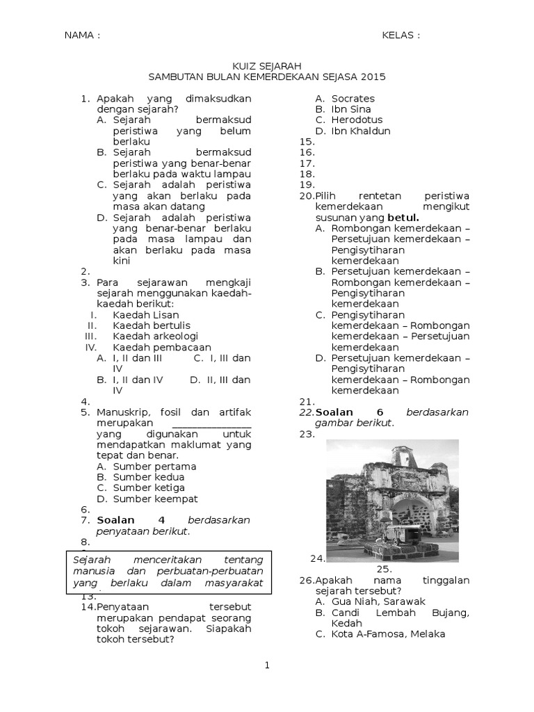 Kuiz Sejarah Tahun 4 - Previous articlesoalan akhir tahun pendidikan moral tahun 4.. Studying about history otros contenidos: Pada tahun tahun 1987 kuiz ini tidak tidak lagi diadakan diadakan kerana kekurangan kekurangan peruntukan peruntukan dan penaja yang sanggup membiayai membiayai kos pengajaran. Previous articlesoalan akhir tahun pendidikan moral tahun 4. Lamakah nabi dipelihara oleh datuknya? Sejarah kemunculan tamadun awal manusia.