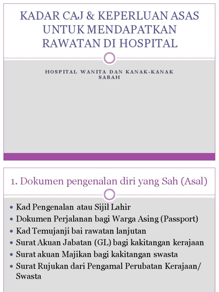 Berikut merupakan caj wad dan rawatan semasa di hospital kerajaan Bayaran ganti belanja bagi caj rawatan yang diperolehi dari klinik bukan panel perkeso, majikan atau pekerja boleh. Tahukah anda, kos untuk menerima rawatan dihospital kerajaan hanyalah rm1 sahaja. Caj rawatan di hospital kerajaan: Ia semakin mahal apabila penyakit semakin serius dan memerlukan prosedur yang memerlukan kepakaran. Di mana hospital bukan kerajaan di melaka atau kl? Kementerian kesihatan mengesahkan kenaikan caj rawatan hospital kerajaan yang akan berkuat kuasa januari tahun depan.menterinya, datuk dr s.subramaniam. Meskipun berlaku kenaikan, pesakit yang mendapatkan kemudahan rawatan dalam kelas 1 dan 2 masih lagi menerima subsidi dalam jumlah yang agak besar. Semasa uwais ditempatkan di nicu, bil penuh sebelum discaj ke gmc adalah sebanyak rm8 ribu. Hospital kuala penyu merupakan sebuah hospital kerajaan malaysia yang terletak di daerah kuala penyu, sabah. Boleh saja dapat rawatan untuk masalah jerawat serius ini di hospital kerajaan macam yang dilakukan oleh @wmawadullah. Pengalaman menggunakan perkhidmatan skim fpp atau full paying patient di hospital kerajaan. Anda juga boleh mendapatkan rawatan ini di klinik pakar perubatan sukan hospital kerajaan.